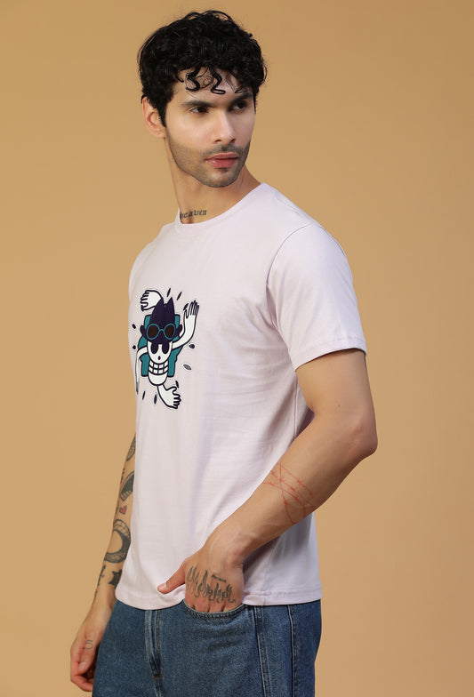 Offer Price Rs. 389Rs. 589 MRP Rs. 799SaleRegular Fit One piece Pirate Crew Symbol Lavender T-Shirt