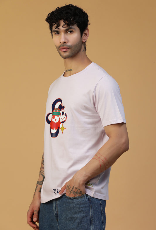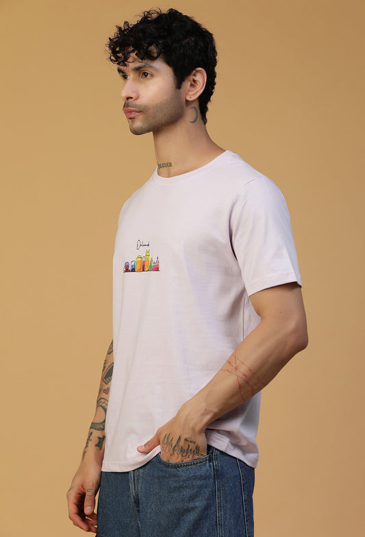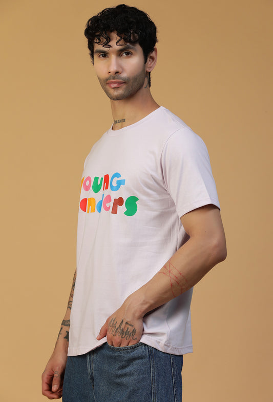 Offer Price Rs. 389Rs. 589 MRP Rs. 799SaleRegular Fit Colorful Typography Design Lavender T-Shirt