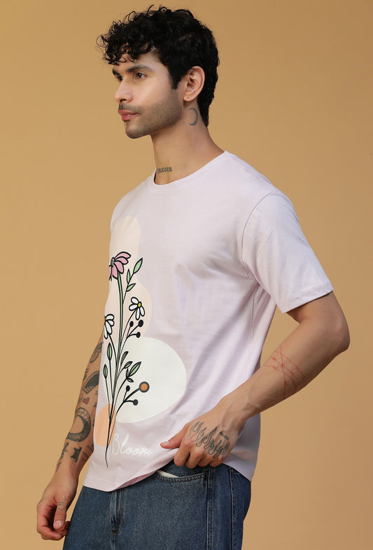 Offer Price Rs. 389Rs. 589 MRP Rs. 799SaleRegular Fit Minimal Floral Design Printed T-Shirt Lavender