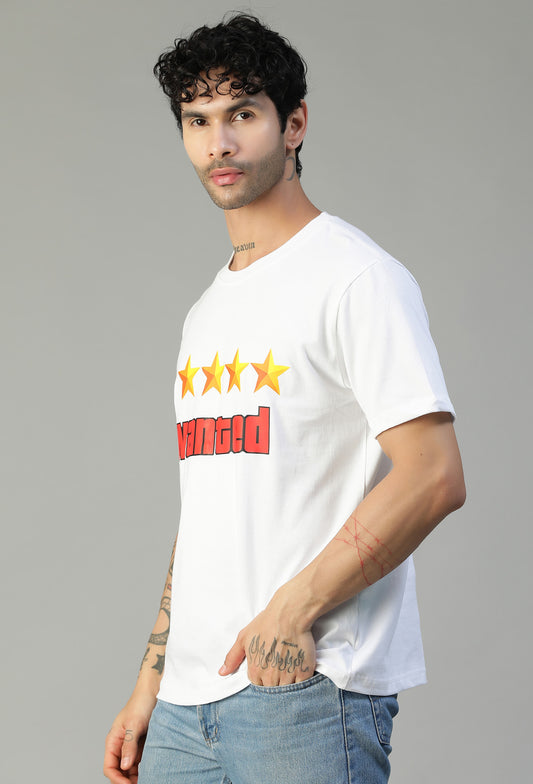 Offer Price Rs. 389Rs. 589 MRP Rs. 729SaleWanted Design Printed Regular Fit Printed T-Shirt White