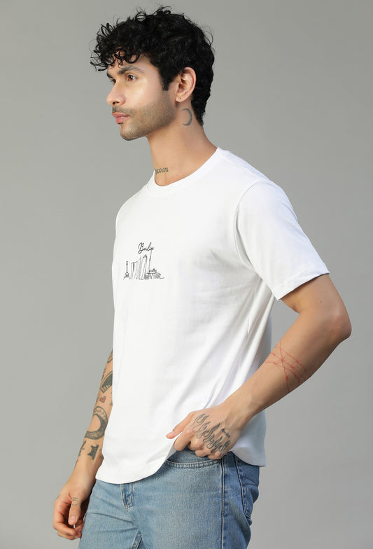 Offer Price Rs. 379Rs. 579 MRP Rs. 699SaleRegular Fit Classic Old Bombay Graphic Printed T-Shirt White