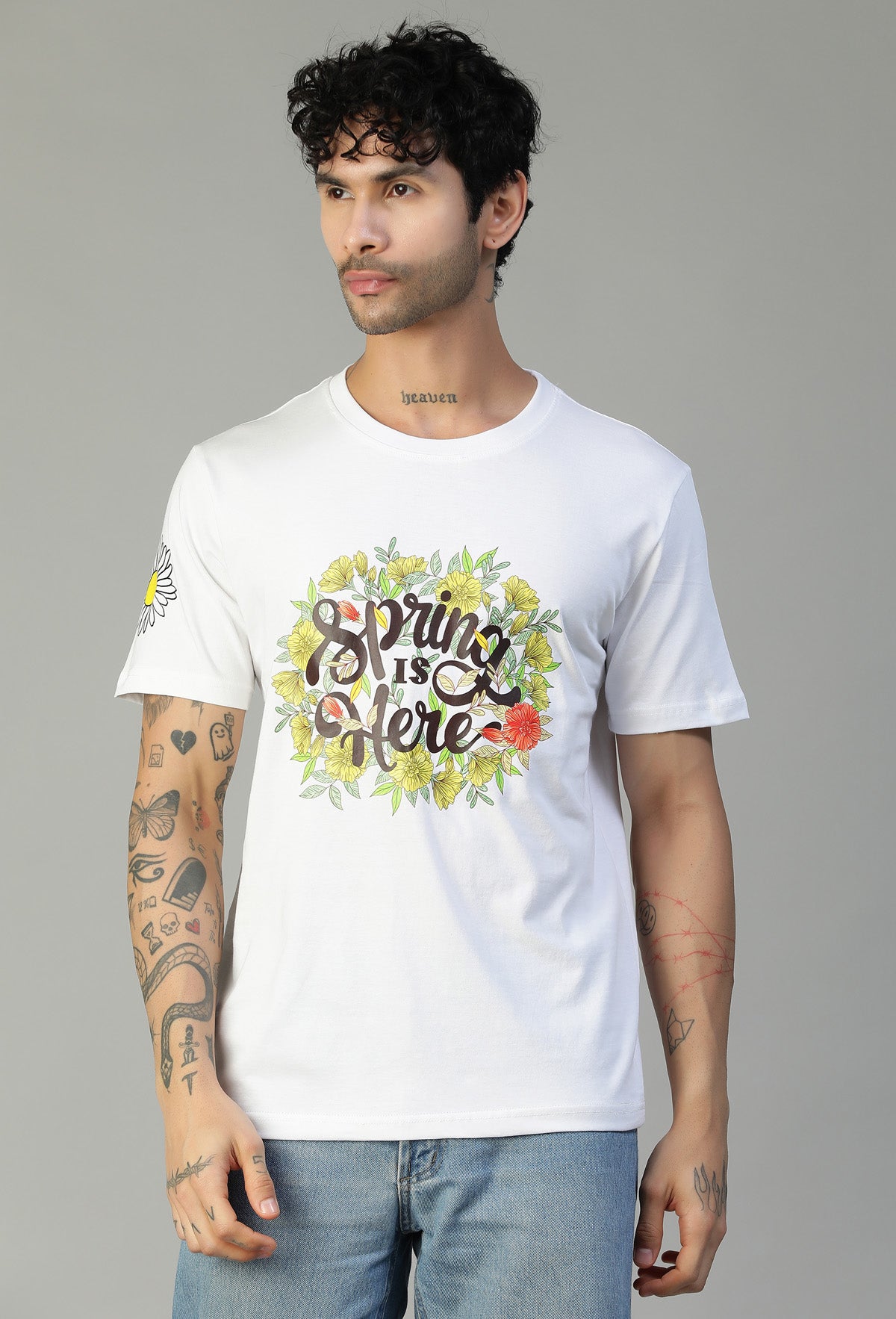 Regular Fit Spring Floral Design Printed T-Shirt White