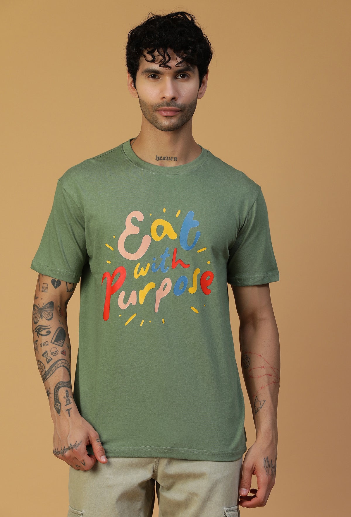 Text Design Printed Regular Fit Printed T-Shirt Olive