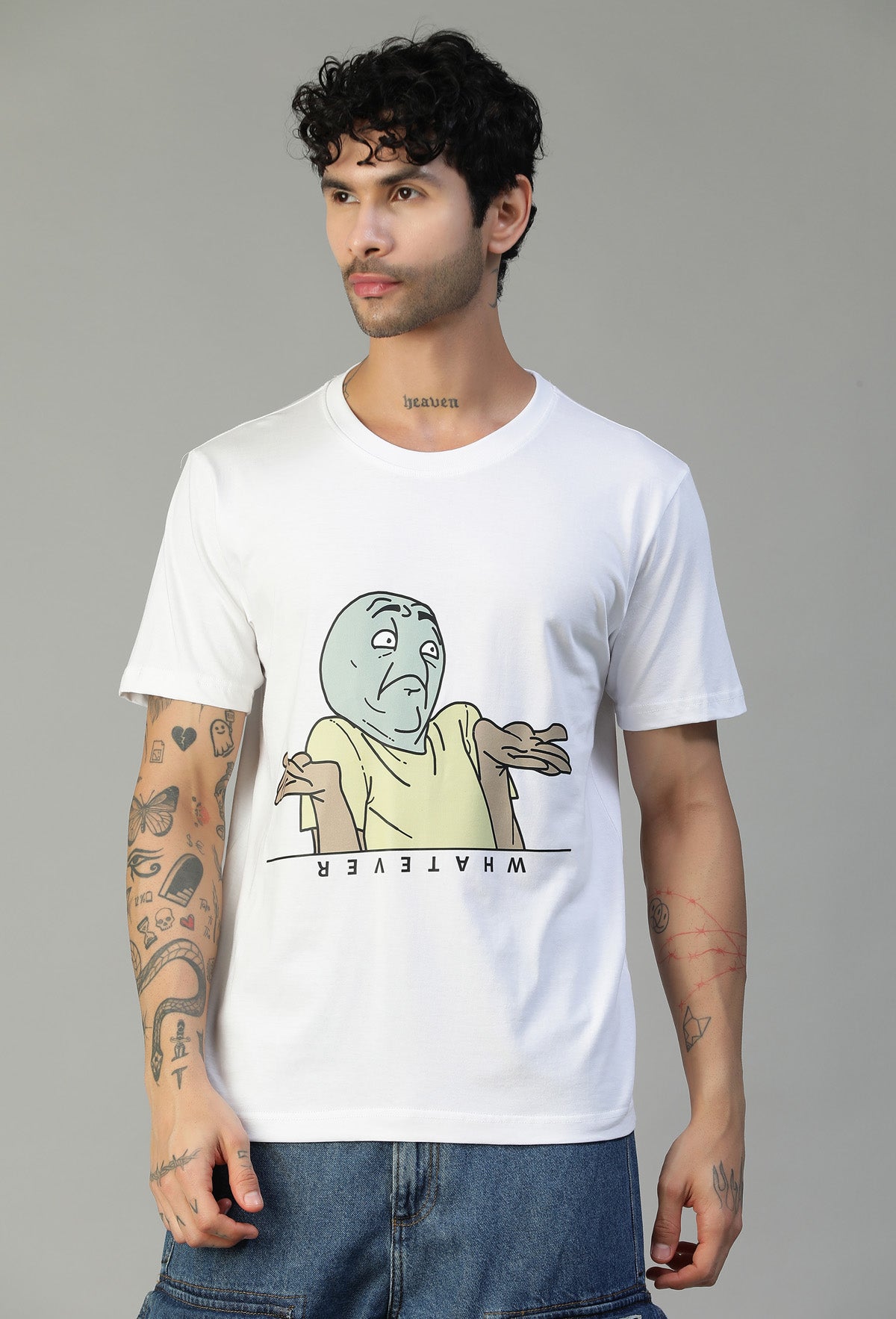 Whatever Funky Troll Face White Regular Fit Printed T-Shirt